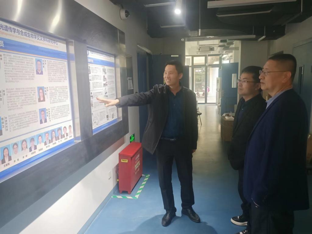 在华东理工大学药学院,黄建军、张伟一行详细了解药学院的建设发展史,深入光遗传学与合成生物学交叉学科研究中心进行考察学习,并与药学院副院长(主持工作)赵玉政围绕院际合作、人才引育、实验室建设管理和硕博士深造进行深入交流。赵玉政热烈欢迎黄建军、张伟一行到药学院调研走访,表示将在高层次人才引进等方面竭力献智献策,并将在合适的时候到山东大学yl9193永利官网考察交流。
